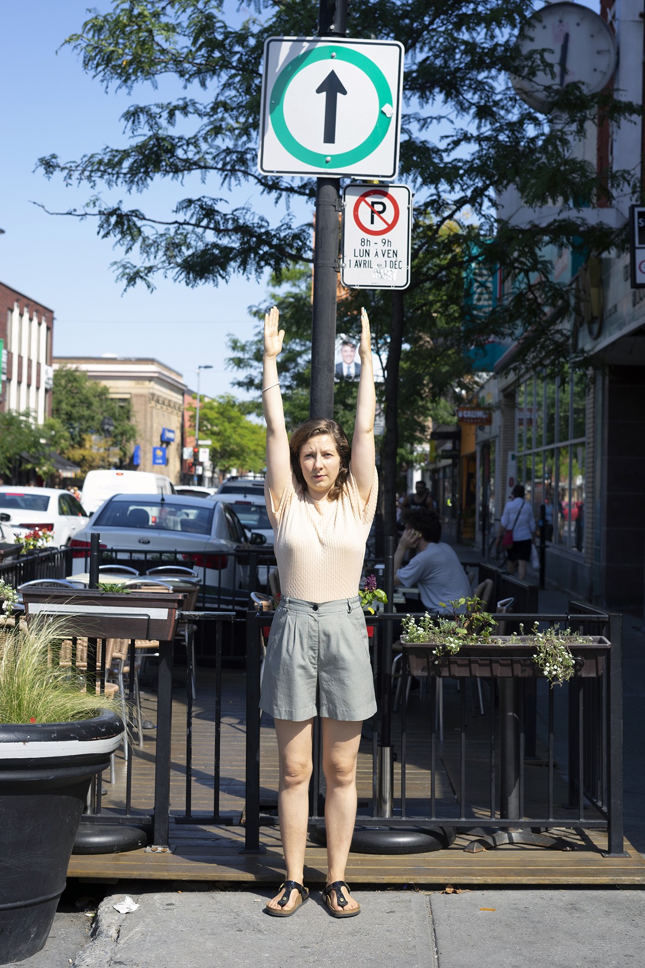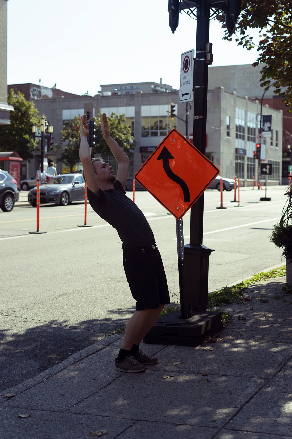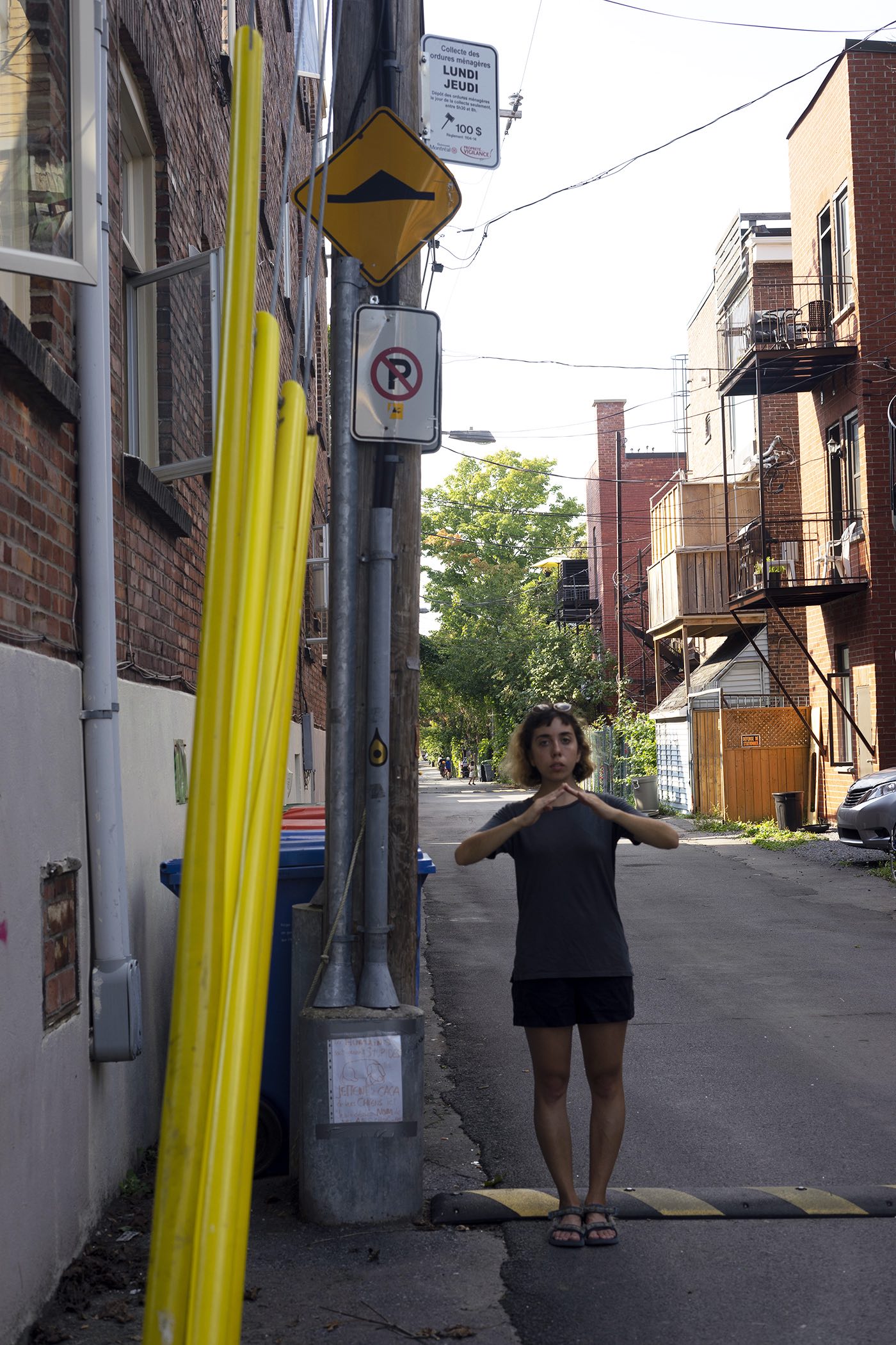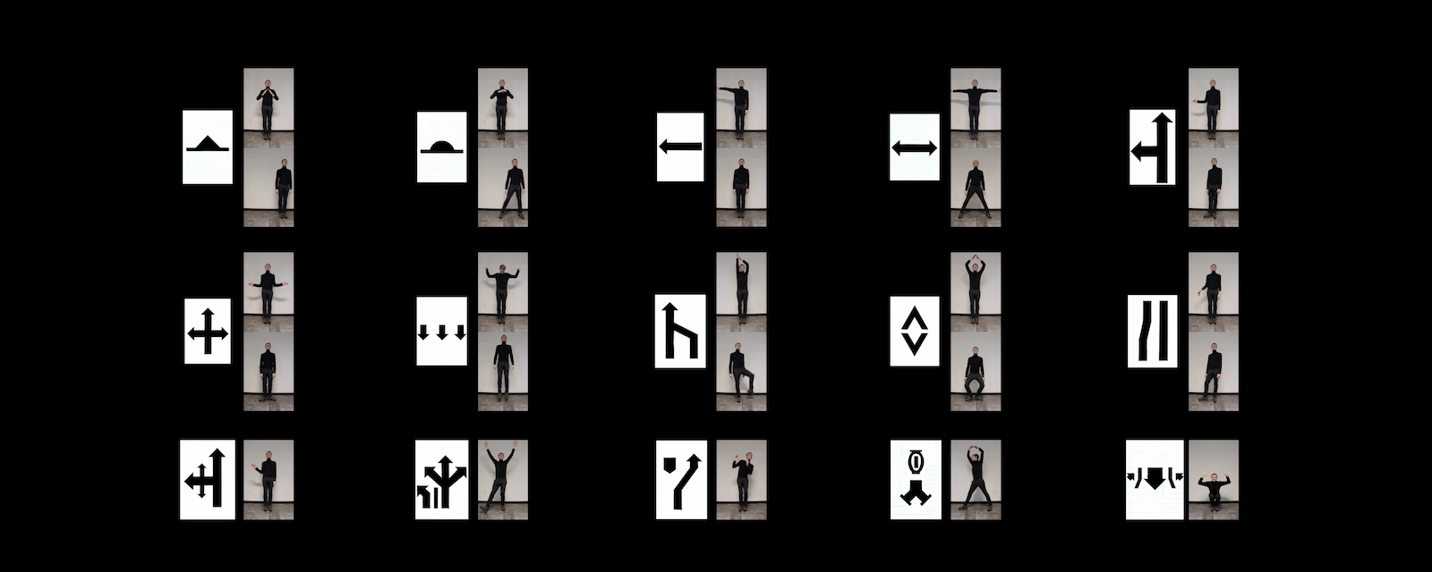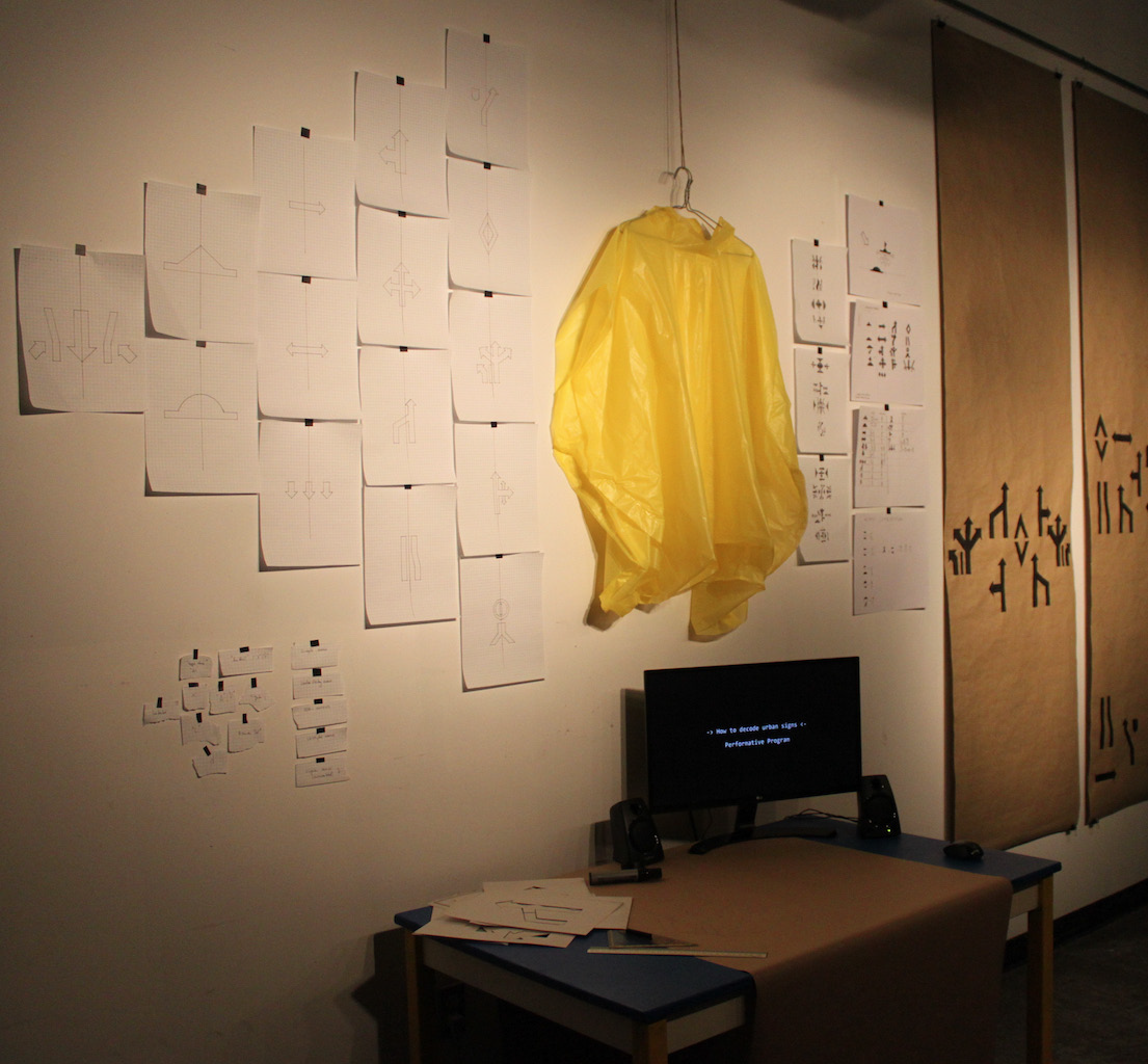 Public signs give instructions on how to behave within the complex urban system. A selection of public signs found in Montreal served as input for HOW TO DECODE URBAN SIGNS. With Rudolf Laban's notation system in mind, the signs were decoded as performative instruction. I stylized, categorized and organized the urban signs to find physical movements that abstract and still display the icon they derive from. The decoded signs are the alphabet for a performative language that illustrates itself in graphic patterns. When read as a score while walking through the city, those patterns lead to unique choreographies.