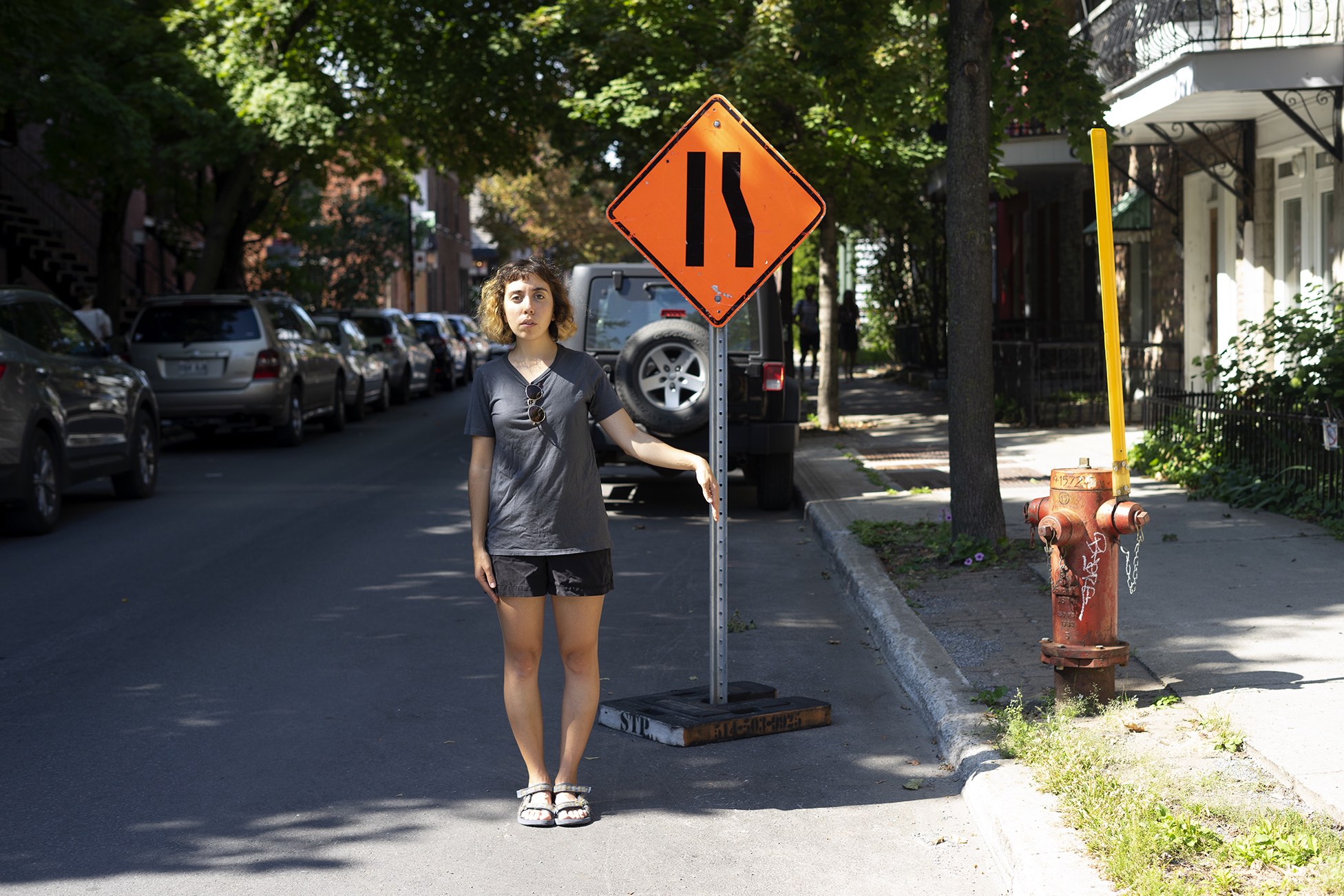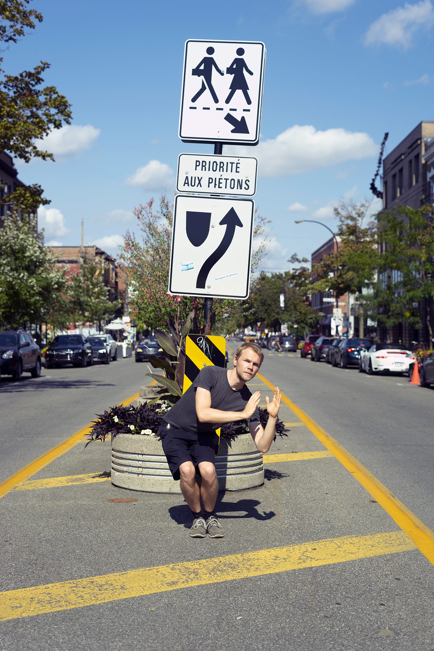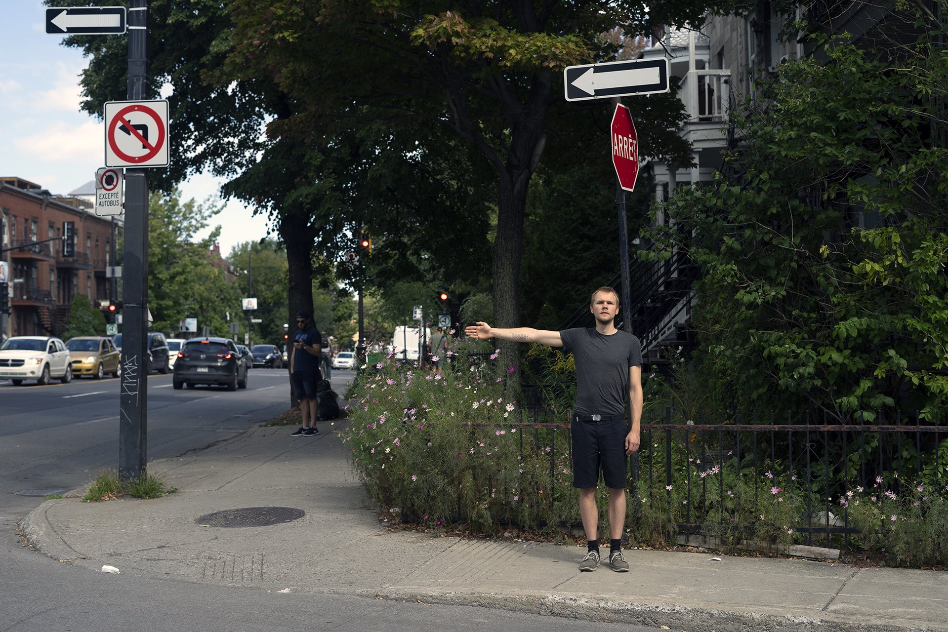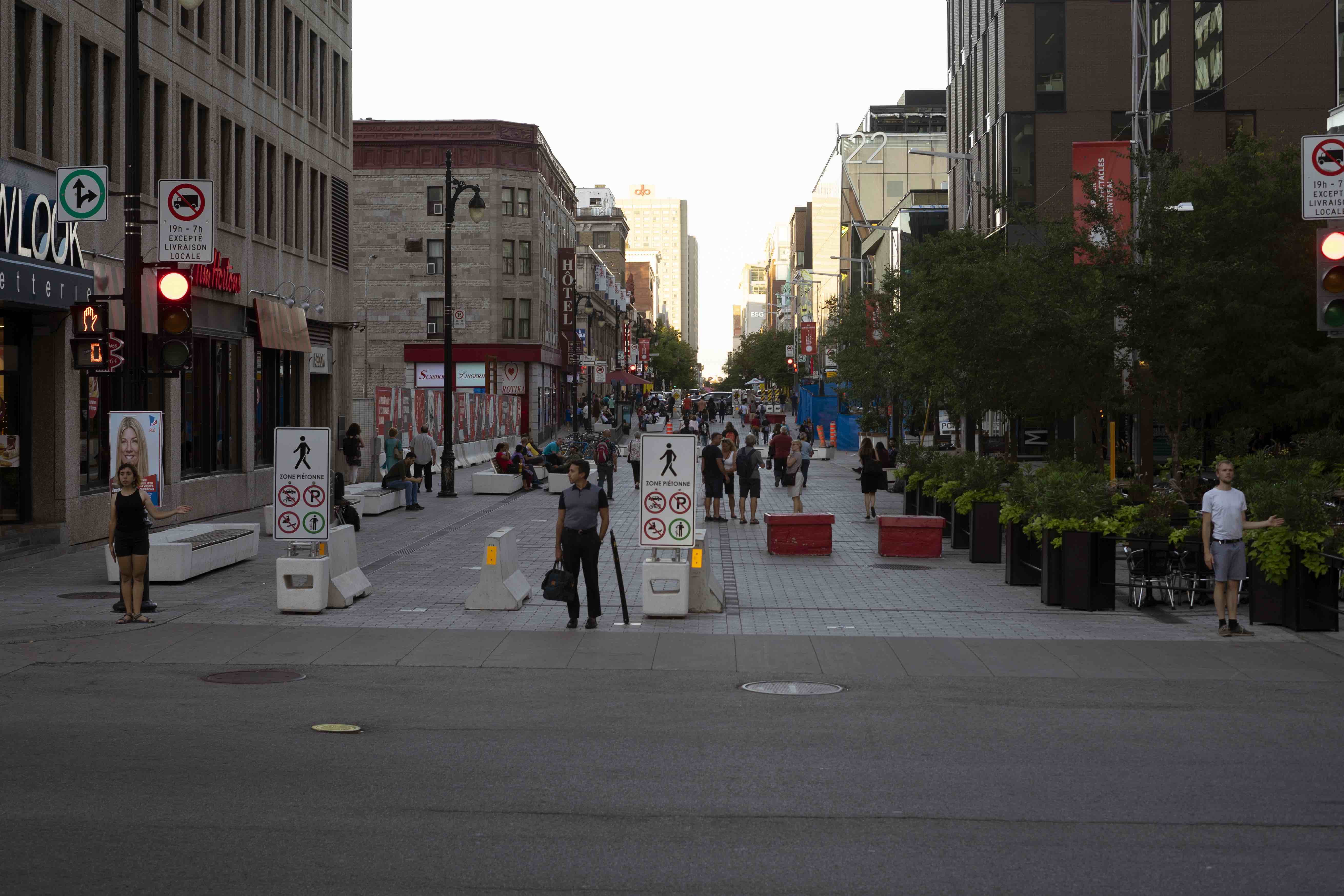 The performance was conducted three times in downtown Montreal (around Boulevard René-Lévesque and Sainte Catherine Street). Pedestrians reacted irritated, amused, annoyed and some tried to immitate the movement of the performers. In all cases, the performance had an impact on the flow of pedestrians and interfered with the urban system.
